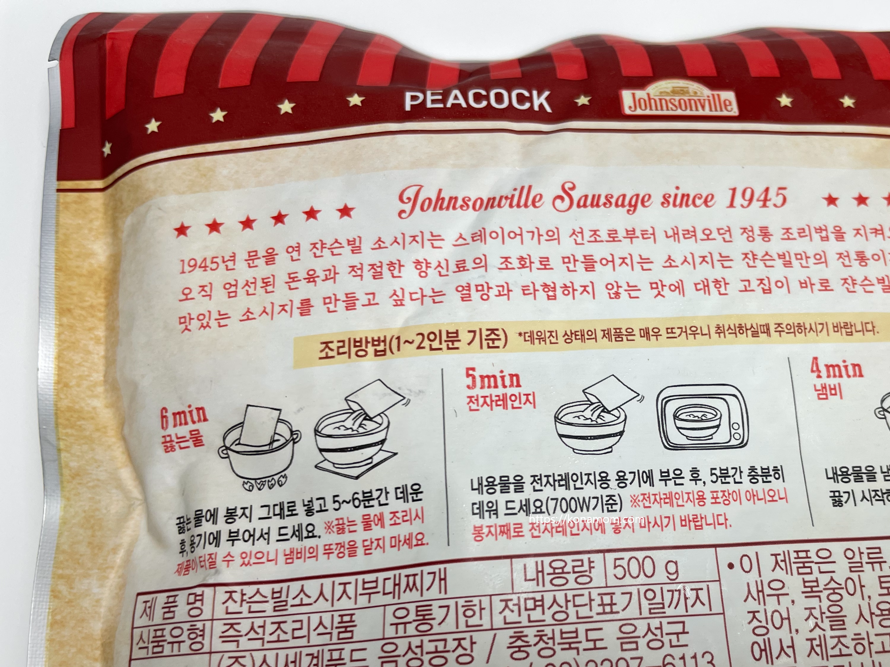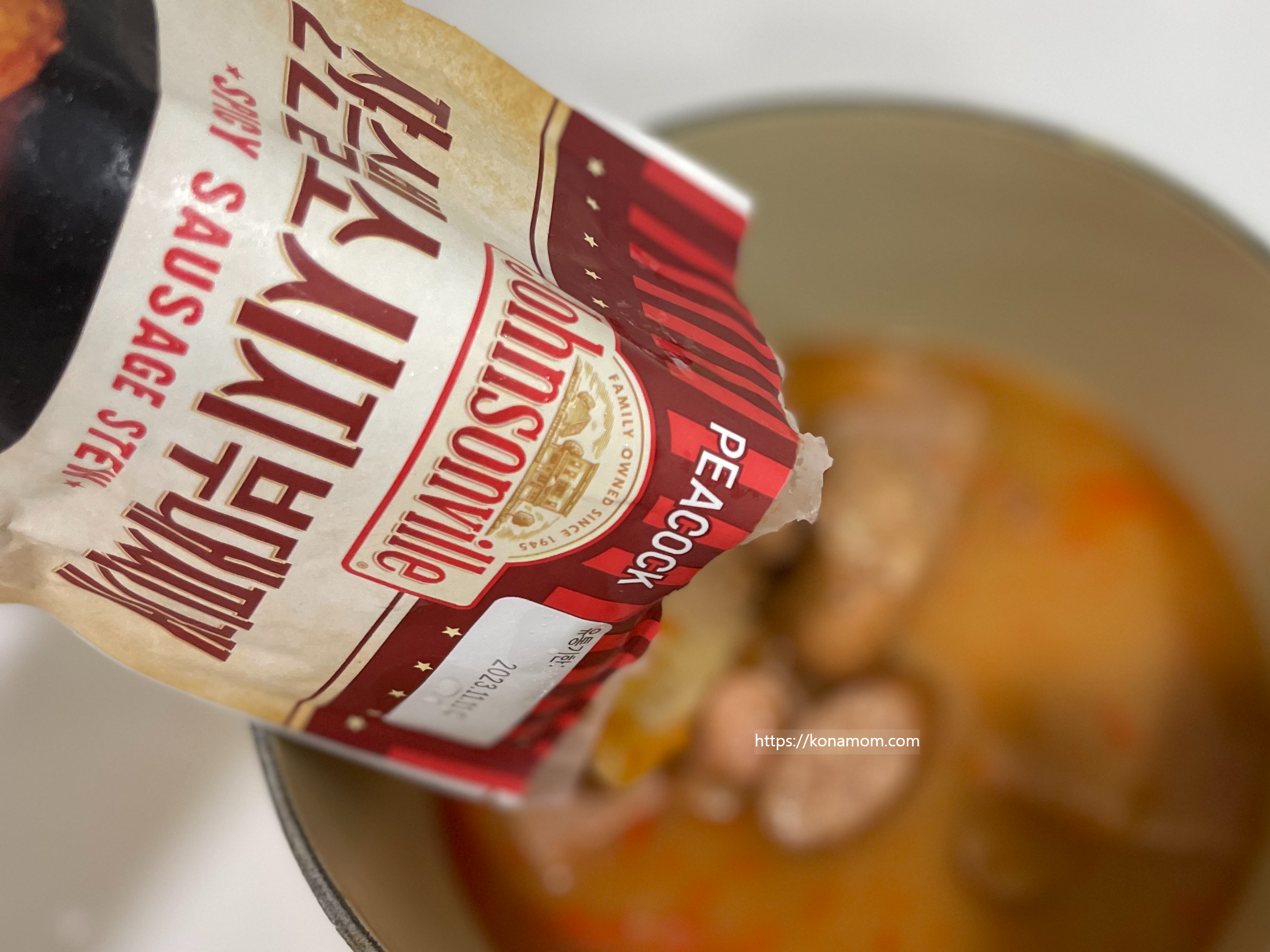 쟌슨빌 소시지 부대찌개는 냉장보관으로 조리법은 아주 간단해서 캠핑이나 여행 때 들고 가도 좋을 것 같아요.