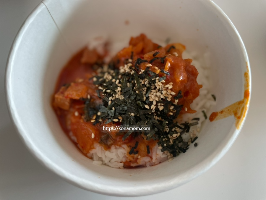 빅 컵반으로 기존 컵반 보다 밥+토핑이 30% 이상 up 되었다고 합니다.