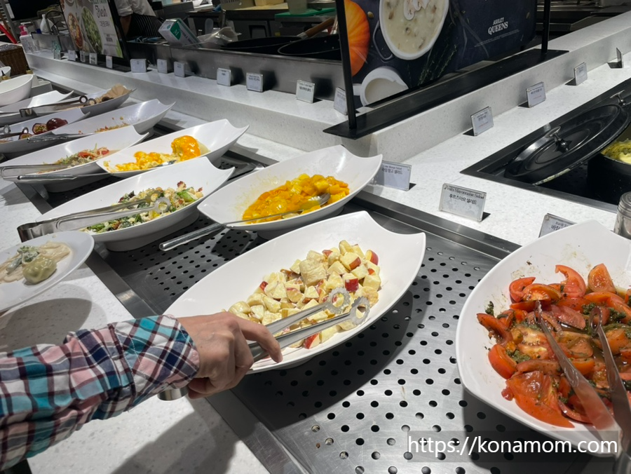 애슐리퀸즈는 뷔페라서 다양한 메뉴 먹고 싶을 때, 그리고 가족 식사나 단체 식사로 방문하기 좋은 것 같아요.