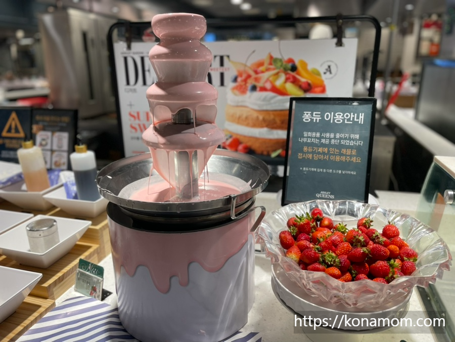 생딸기가 있어서 퐁듀에 찍어서 먹을 수 있는데요, 생딸기가 너무 맛있어서 그냥 먹었습니다.