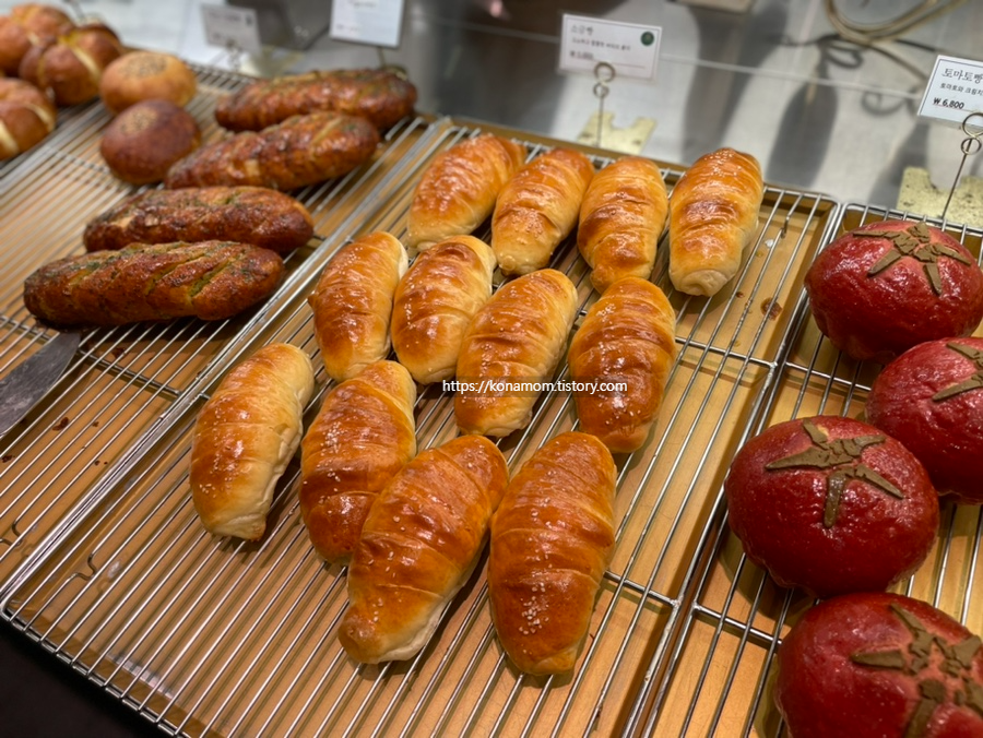 가운데 빵들이 진열되어 있고 안쪽으로는 음료나 케이크 주문할 수 있는 곳이 있습니다.