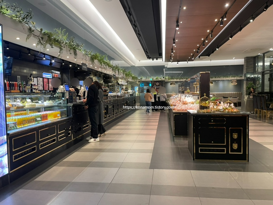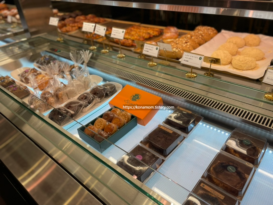가운데 빵들이 진열되어 있고 안쪽으로는 음료나 케이크 주문할 수 있는 곳이 있습니다.