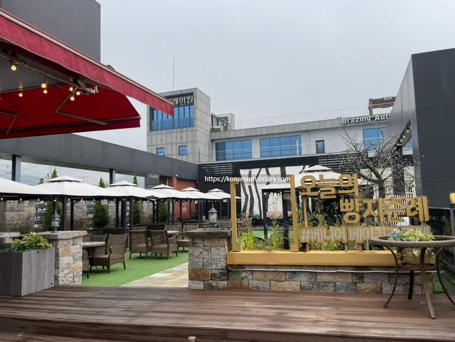 비가 와서 좀 어둡게 나왔는데, 원래 테라스 카페로 유명한 베니어 베이커리 카페입니다.