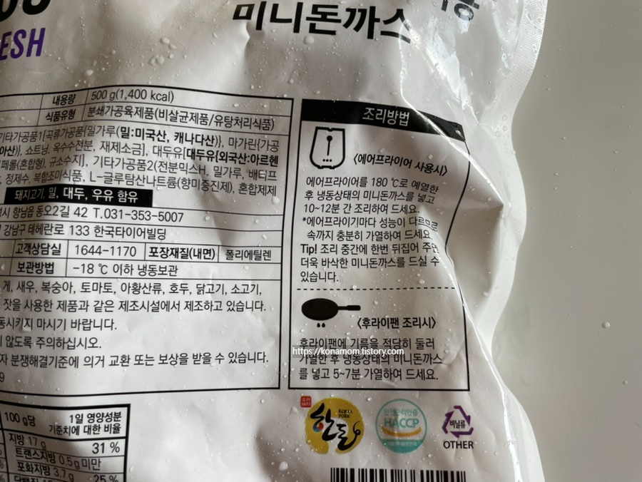 식당에 가지 않고 집에서 많은 기름을 써서 튀겨 먹기는 아무래도 어려운데, 이 컬리 미니돈까스는 에어프라이어에 했는데도 불구하고 바삭하고 고기도 두툼해서 아이 반찬으로 샀다가 어른반찬으로 이틀 만에 한 팩을 다 먹었습니다;;