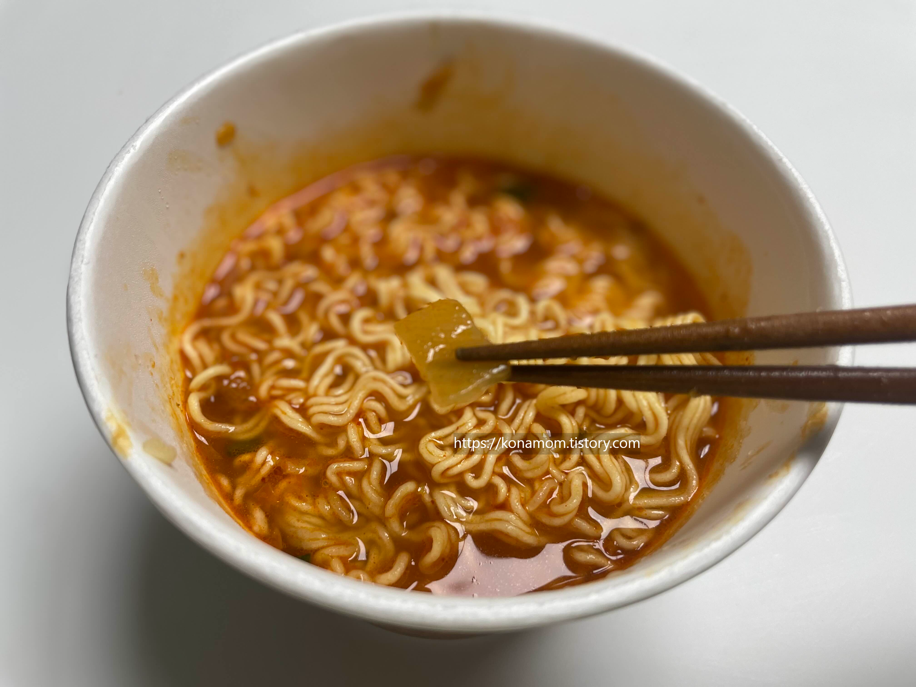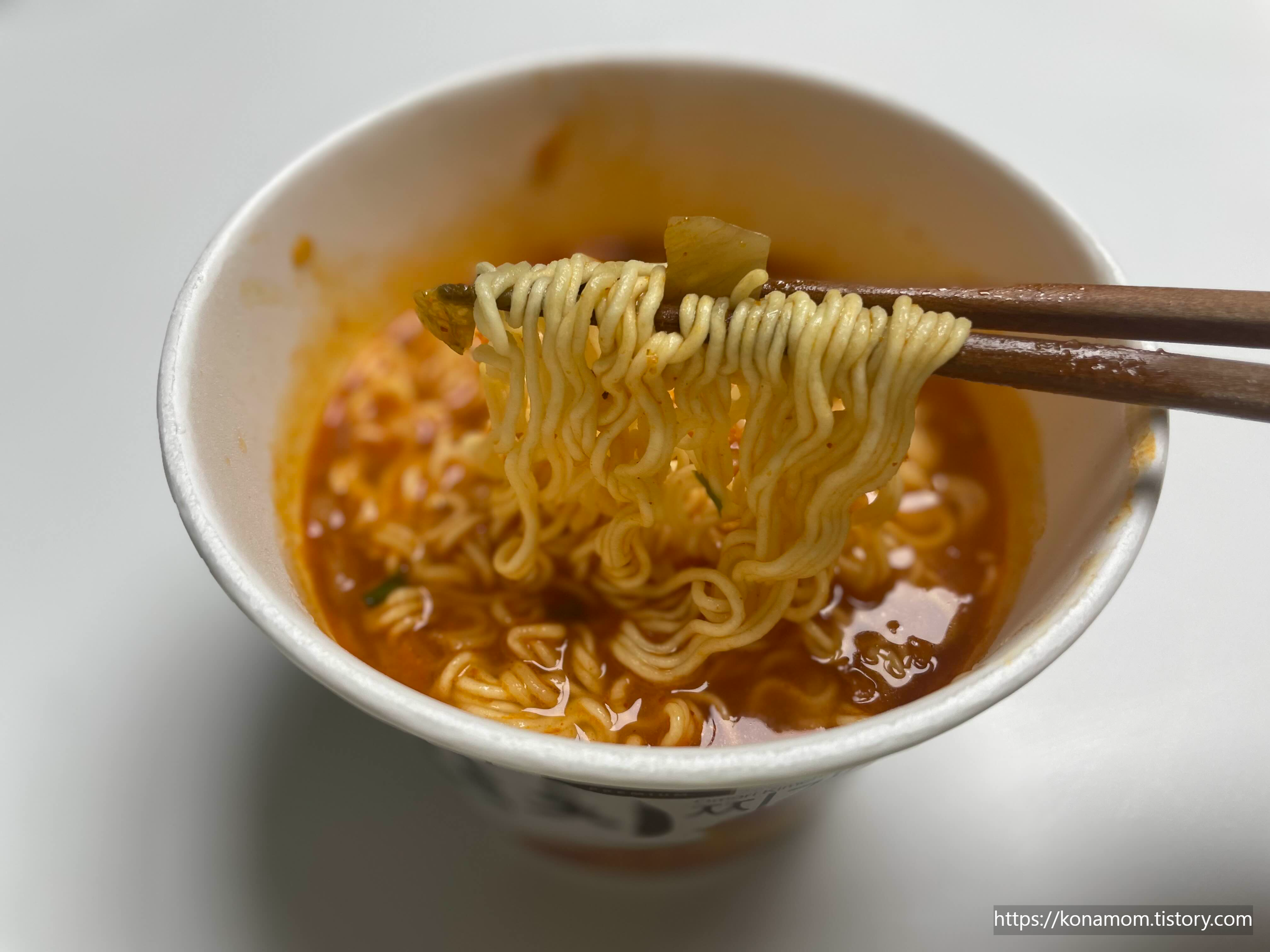 오모리 하면 예전에 김치찌개 집으로 유명했던 것 같은데, 이렇게 컵라면으로도 나오니 간단하게 먹을 수 있는 김치찌개라면이 되었네요.