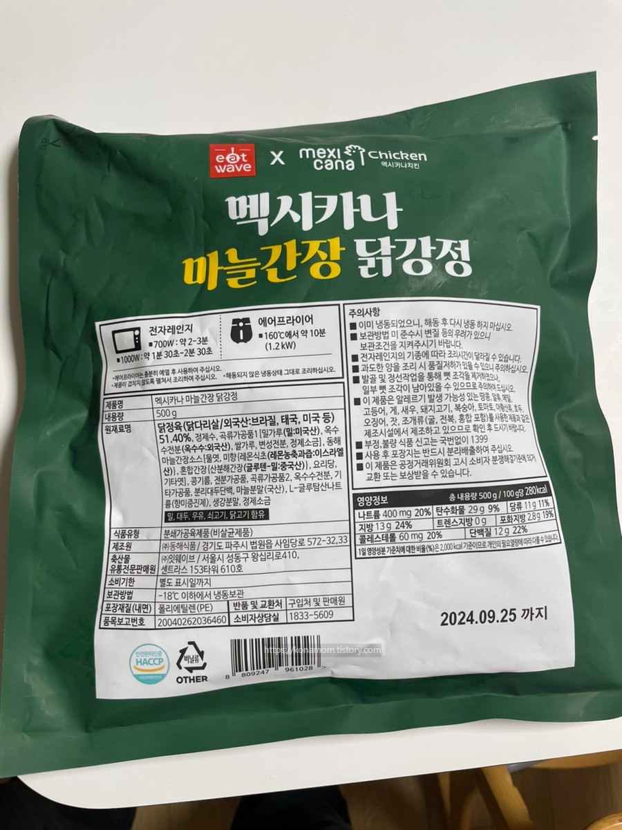 전자레인지는 대락 2~3분 정도인데, 전자레인지에 따라서 조절해 주시고 에어프라이어는 160도에 10분 하시면 된다고 해요. 에어프라이어를 사용하신다면 충분히 예열 후 겹치지 않게 펼쳐서 조리하시는 것이 좋다고 합니다.