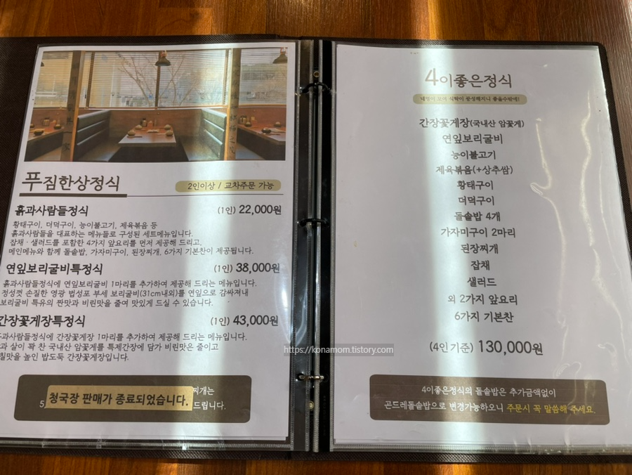 그리고 2인 이상이서 주문할 수 있는 푸짐한상정식 메뉴도 있고 그 외에도 다양한 세트 메뉴와 정식 메뉴가 있으니 여러 명이서 방문하셔서 모임장소로 하시면 좋을 것 같습니다.
