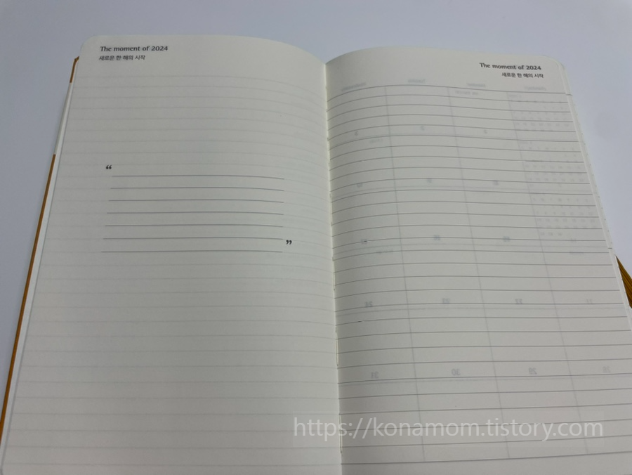 새로운 한해 시작하는 다짐이나 마음도 적어 볼 수 있는 장도 보이고