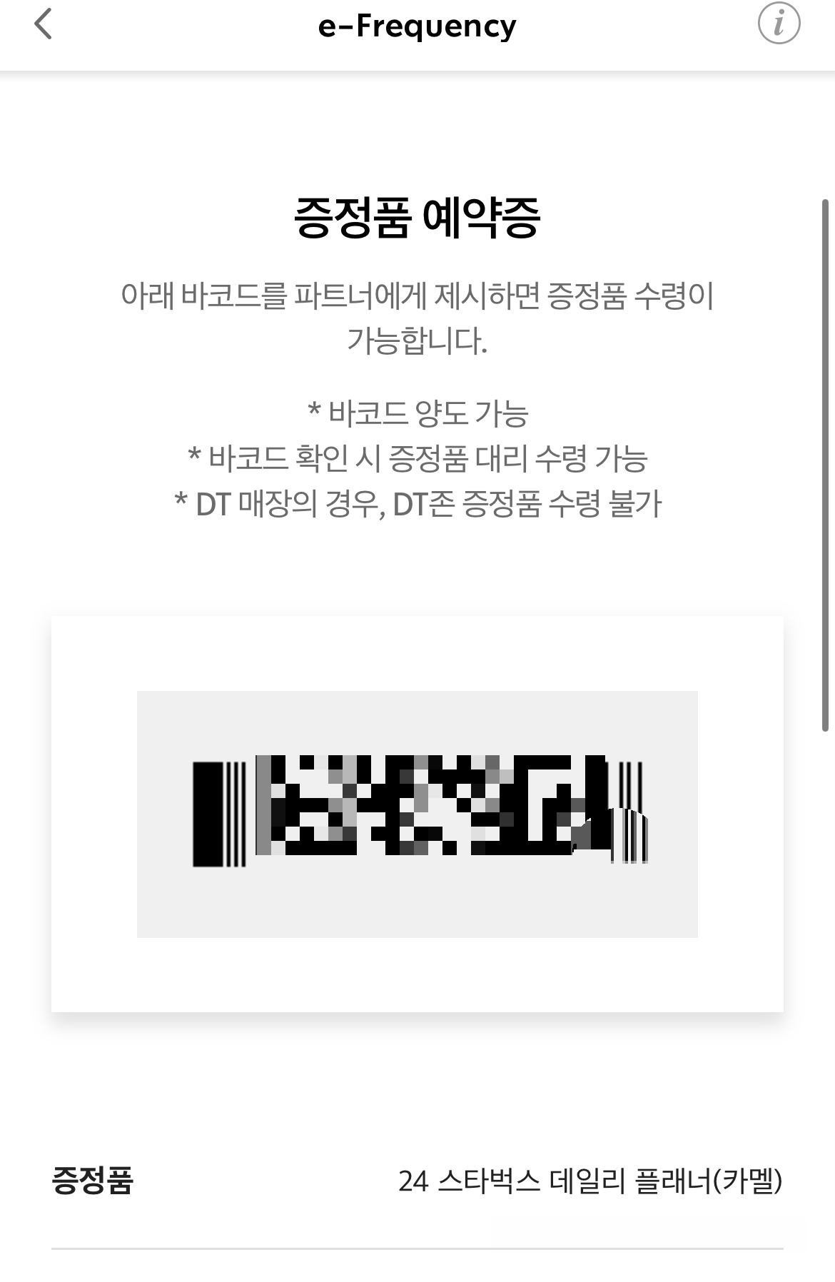스타벅스 증정품을 찾을 때는 이렇게 스타벅스 앱에서 바코드를 확인 후 수령하실 수 있습니다.