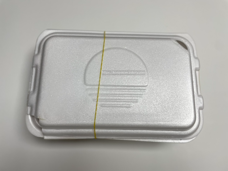 본가 만두전골 전문점 포장은 이런 도시락에 담아 두시는데, 대각선 양쪽 끝에 구멍이 있어서 금방 만들어서 뜨겁지만 김이 빠지게 되어 있어서 많이 눅눅해지지 않습니다.