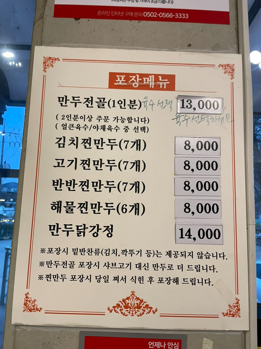 만두전골 맛집이라 식당에서는 만두전골 먹고~ 포장은 만두 닭강정을 해 와서 먹고는 합니다.