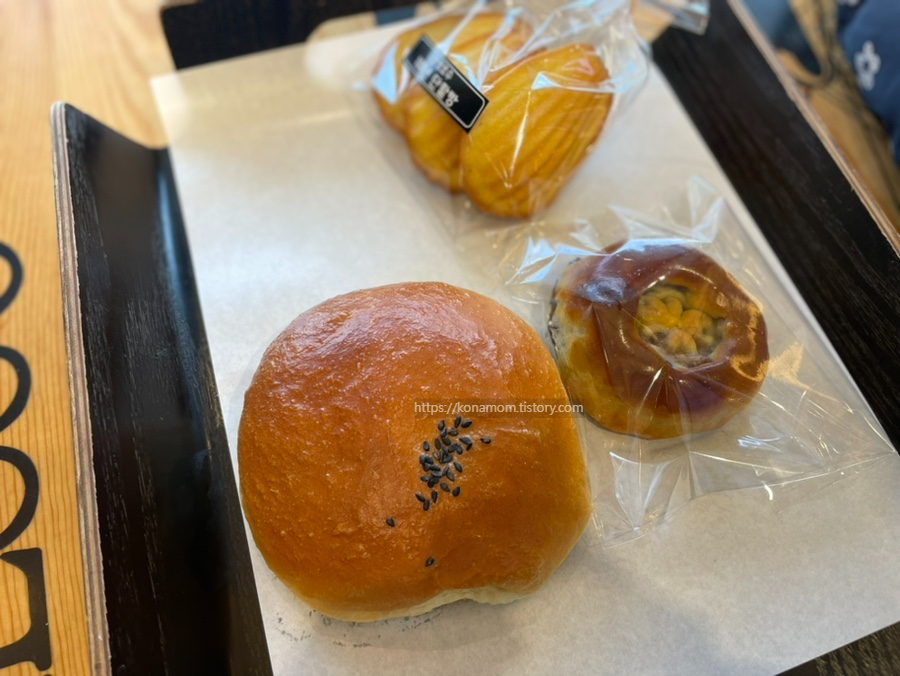 커피와 100년 단팥빵, 명성빵, 마들렌 이렇게 구입했습니다.