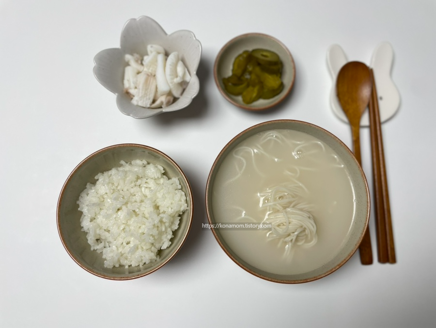 소면을 좋아하는 아이라 한우사골곰탕에 소면을 넣어 줬더니 정말 맛있게 먹었습니다.