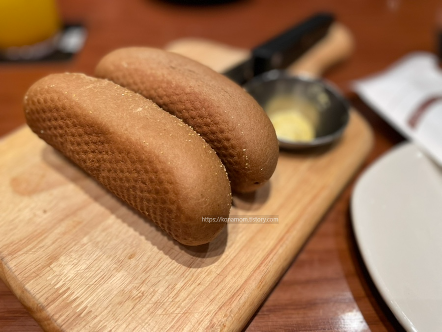 아웃백 런치메뉴에는 부쉬맨 브레드, 스프, 과일에이드, 디저터(커피)가 포함되어 있습니다.