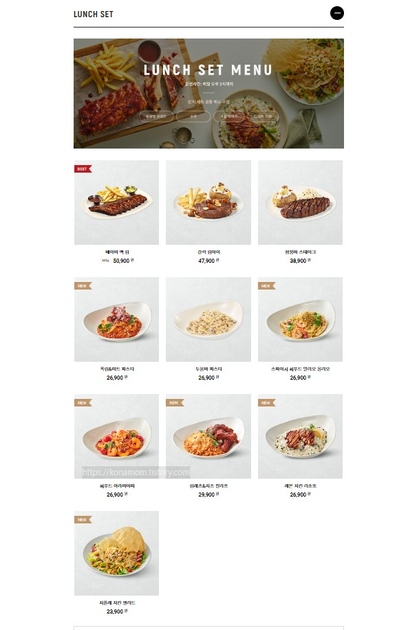 아웃백 하면 런치! 아웃백 런치메뉴입니다.