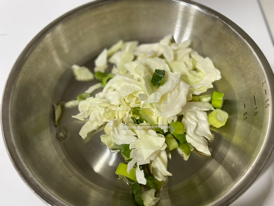양배추가 냉장고에 있어서 추가로 더 넣었더니 조금더 푸짐해진 느낌입니다.