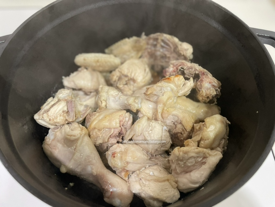 기름기가 없는 닭일 경우에만 식용유 1스푼 둘러 줍니다.