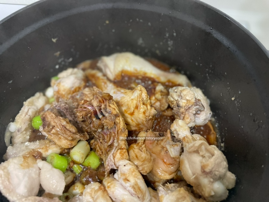 처음에 간장에 끓여서 그런지 고기에 간도 잘 베었고 잘 익었습니다.