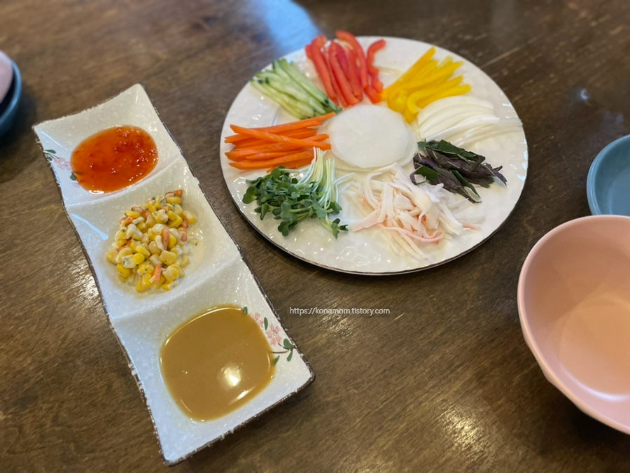 일단 월남무쌈 야채가 나왔는데요, 추가로 더 드신다면 추가금액 내고 주문해서 드시면 됩니다.