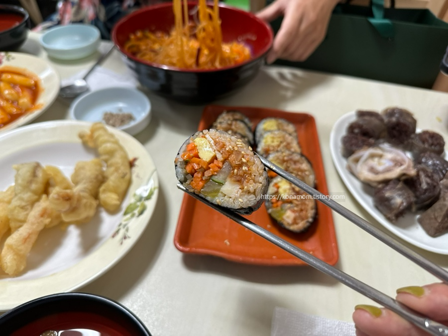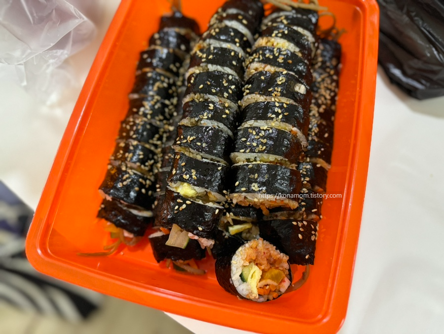 오는 길에 참치김밥, 김치김밥, 치즈김밥 포장해 와서 주말 내 잘 먹었습니다.
