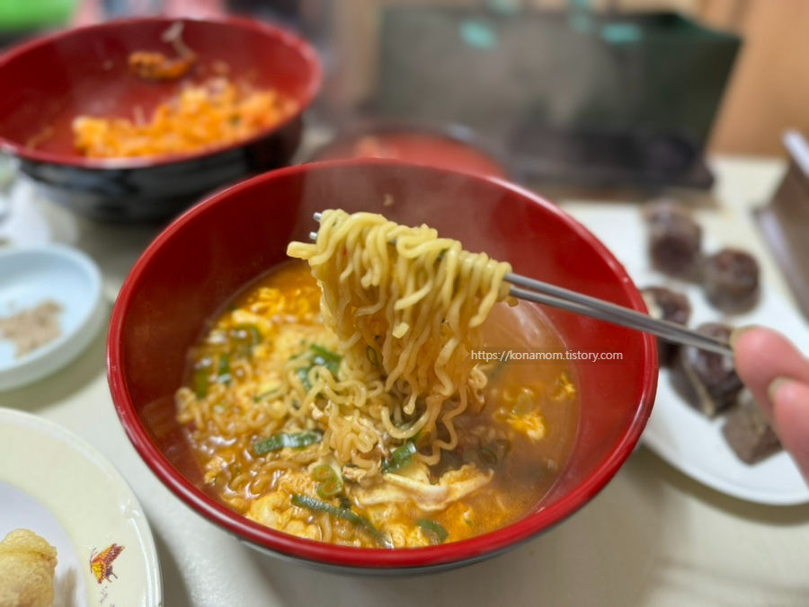 꼬들한 라면! 집에서는 항상 면이 퍼지는데, 수봉분식 라면은 다 먹을 때까지 꼬들합니다.