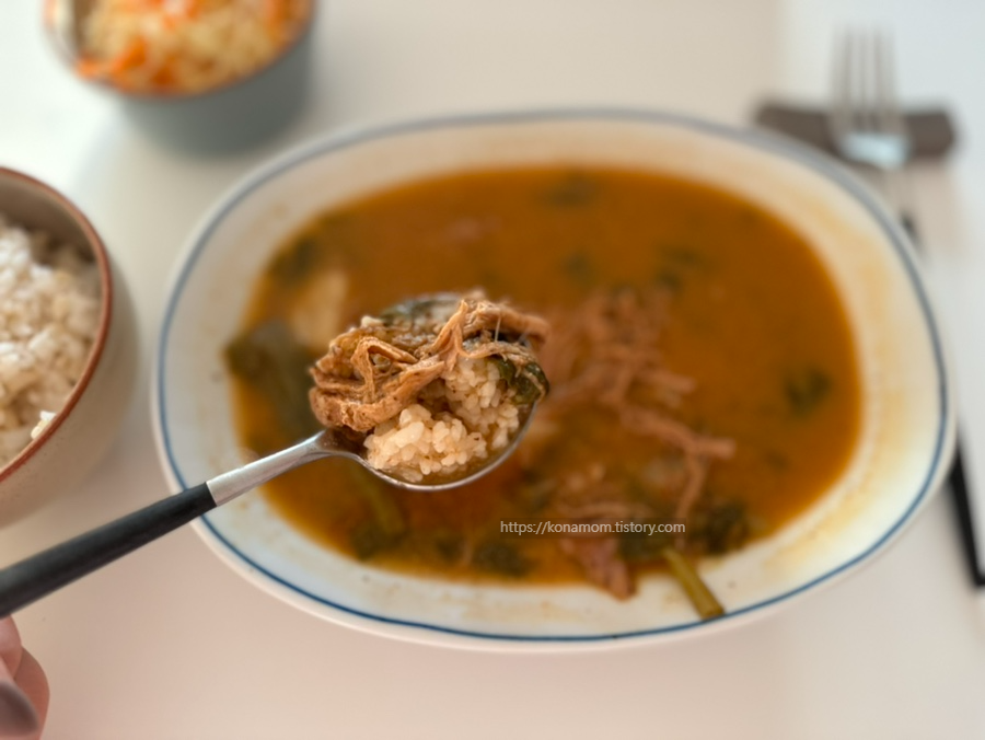 고기는 결대로 찢어서 먹으니 부드러웠고 국물도 진하고 들깨향이 나면서 꽤 맛있게 먹었습니다.