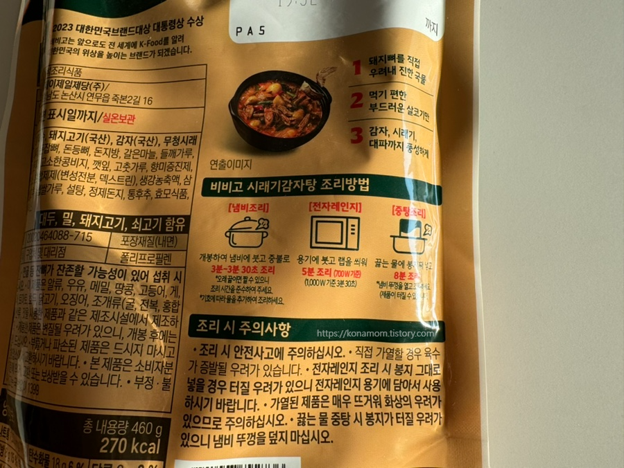 내돈내산 비비고 시래기 감자탕 솔직후기