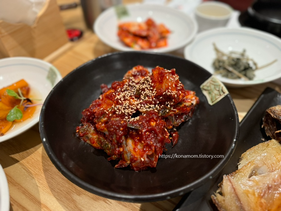 양념게장은 서해 꽃게로 요리했다고 나와 있던데, 양념이 너무 맛있어서 밥이랑 순식간에 먹었습니다. 마지막 양념까지 밥에 비벼서 먹었더니 집에서 물을 꽤 많이 마시게 되었지만 양념게장 사 오고 싶을 정도로 너무 맛있었습니다.