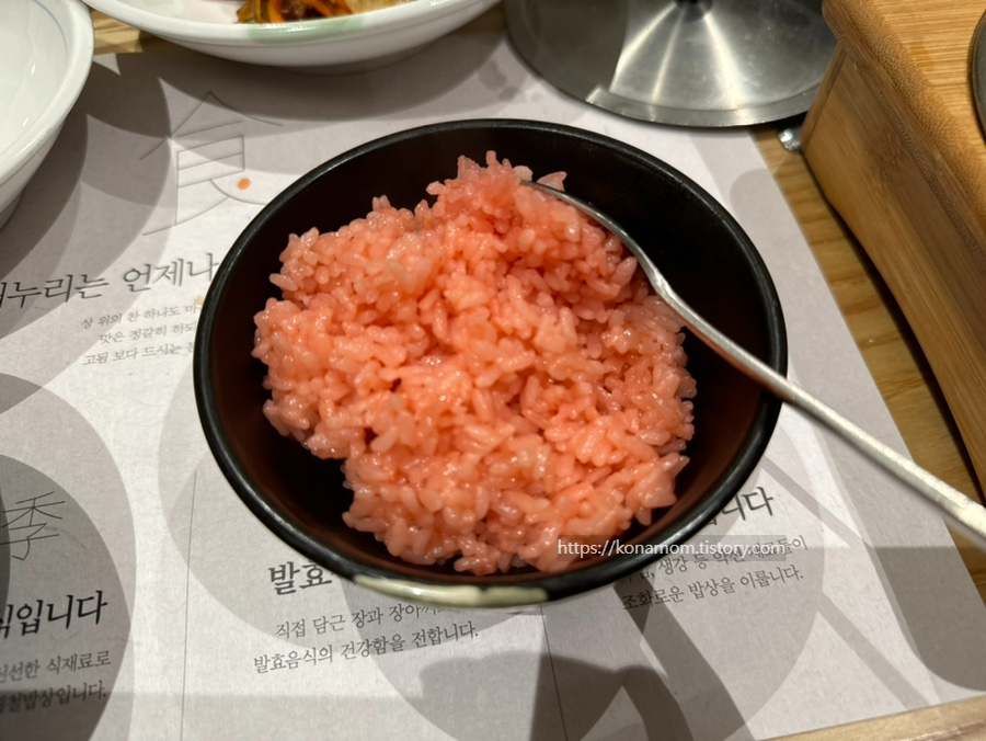 핑크색 밥이 신기하기도 하고 솥밥에 찰기가 있어서 양념게장에 딱이었습니다.