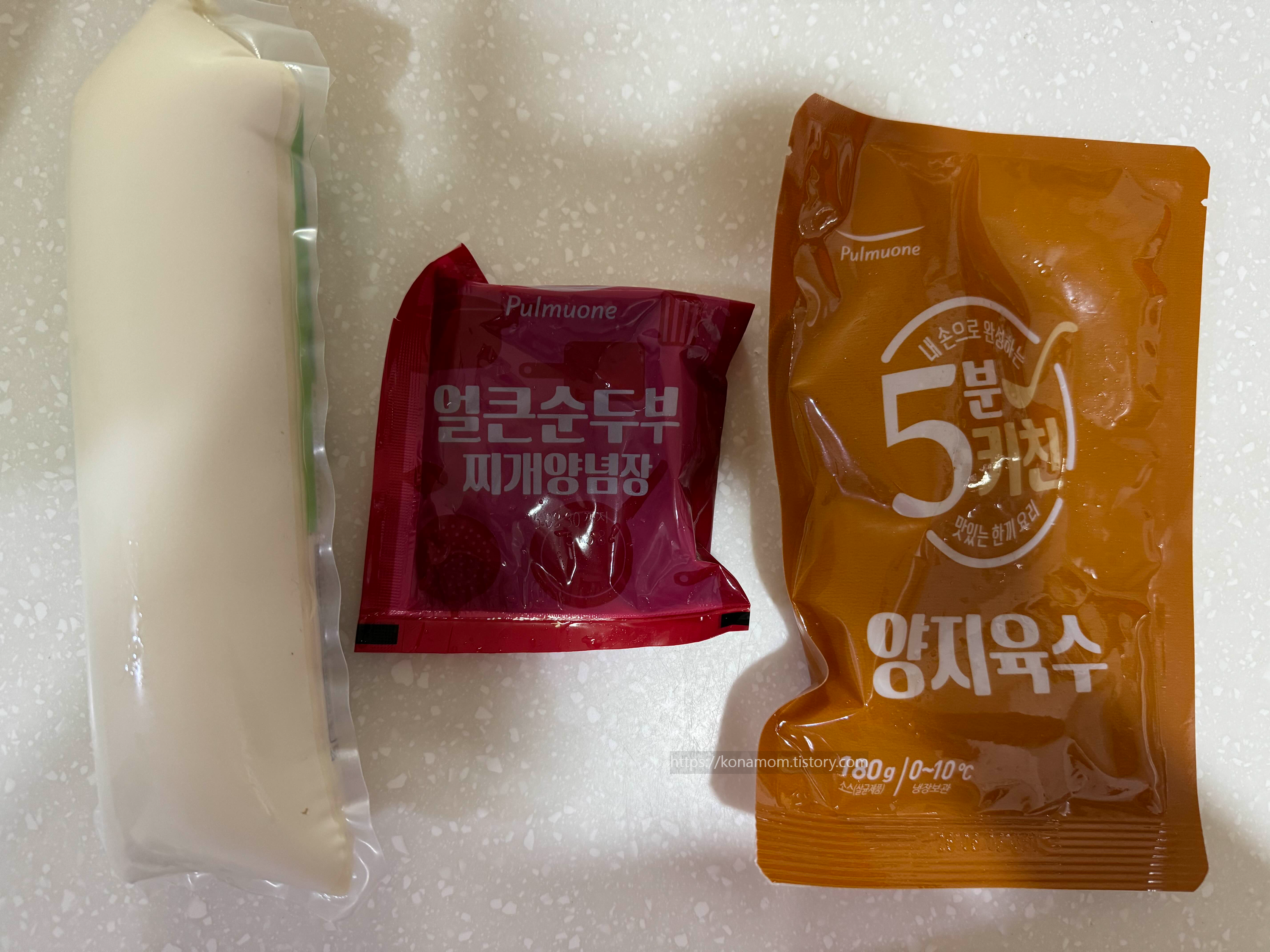 간단 순두부찌개 풀무원 얼큰순두부 찌개 구성은 순두부찌개, 찌개양념장, 양지육수가 들어가 있습니다.(달걀없음)