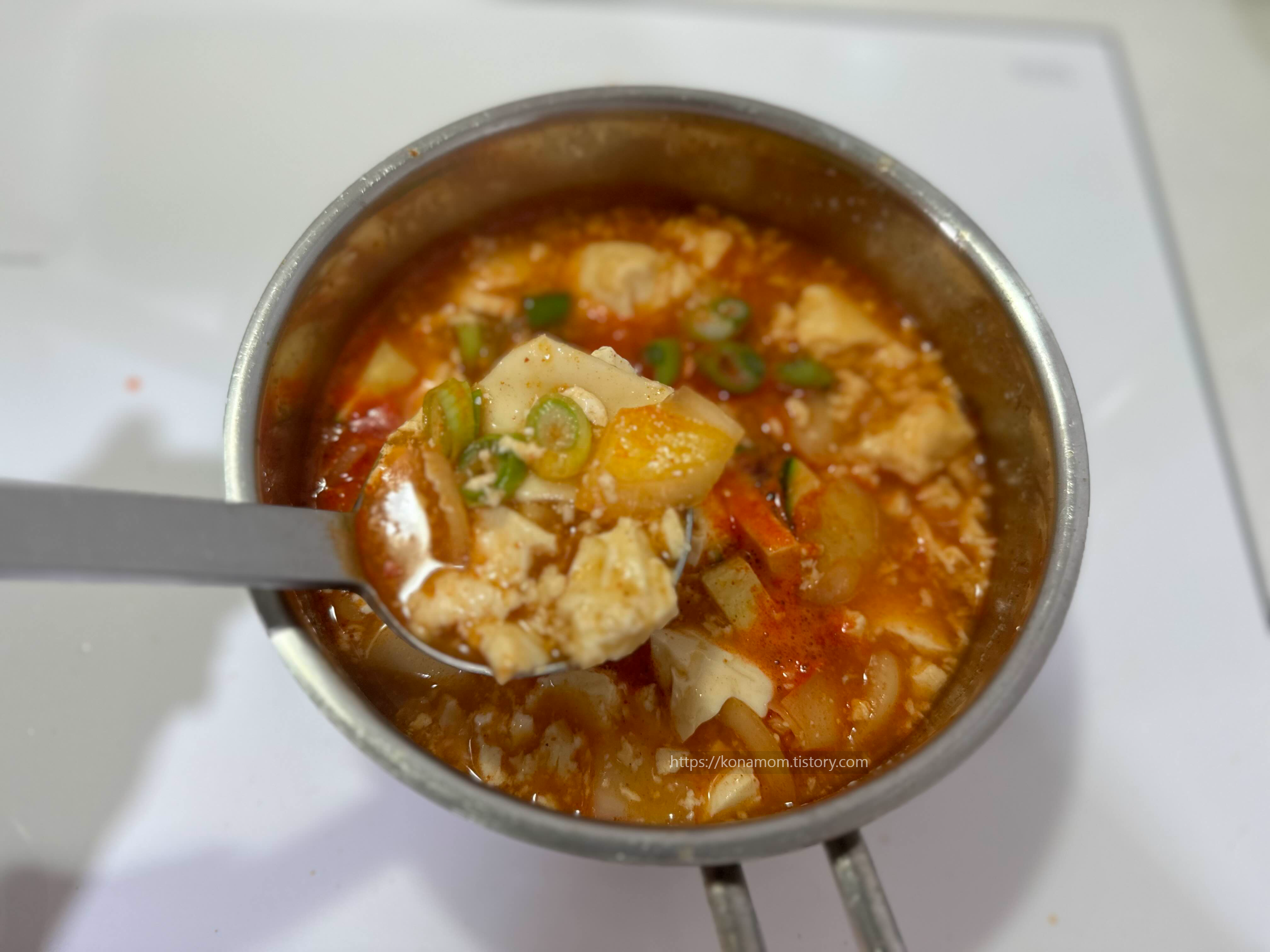 물도 필요 없는 순두부찌개! 육수도 들어가 있어서 순두부찌개가 5분안에 뚝딱!