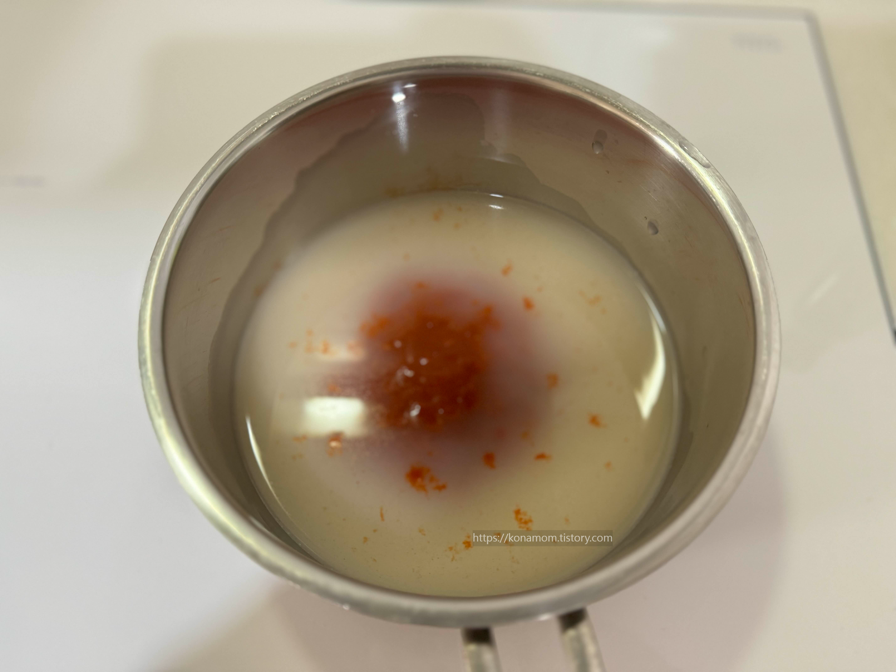 냄비에 육수와 양념장 넣고 끓으면 순두부 넣고 3분 30초만 더 끓이면 완성!