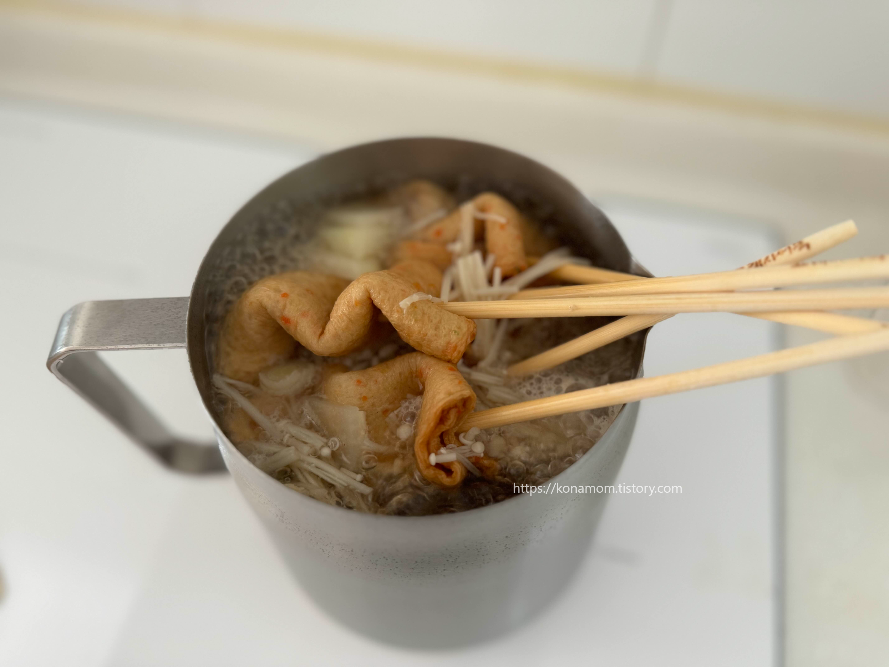조리법은 간단한데, 어묵이 너무 맛있어서 한팩 끓이면 한 자리에서 다 먹는 것 같습니다.