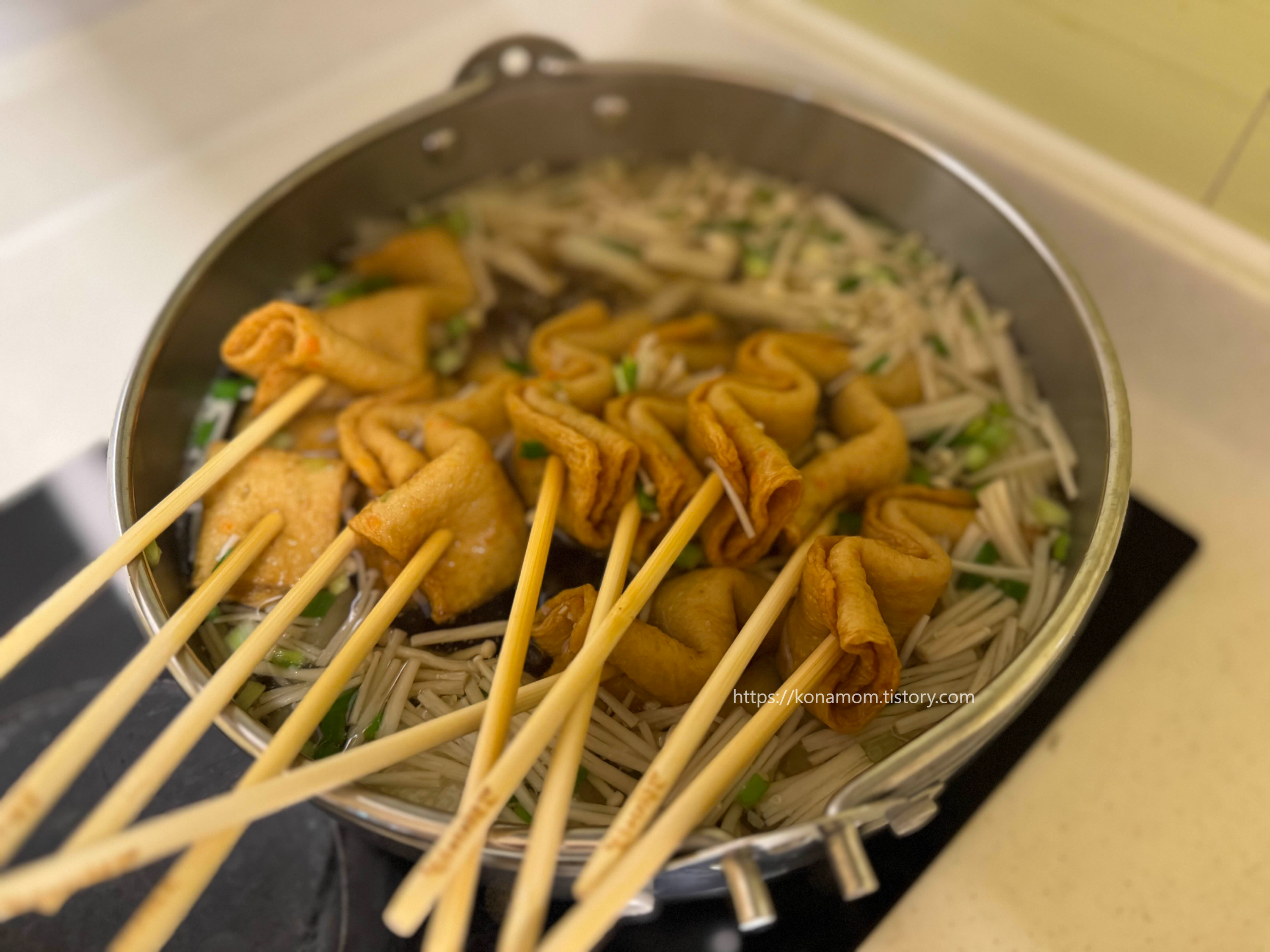 조리법은 간단한데, 어묵이 너무 맛있어서 한팩 끓이면 한 자리에서 다 먹는 것 같습니다.