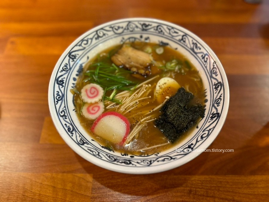 아이가 맛있게 먹었던 소유라멘! 지난번 우동 면발도 맛있었는데, 라멘도 면발이 쫄깃했고 국물이 맛있는지 아이가 계속 떠 먹더라고요.