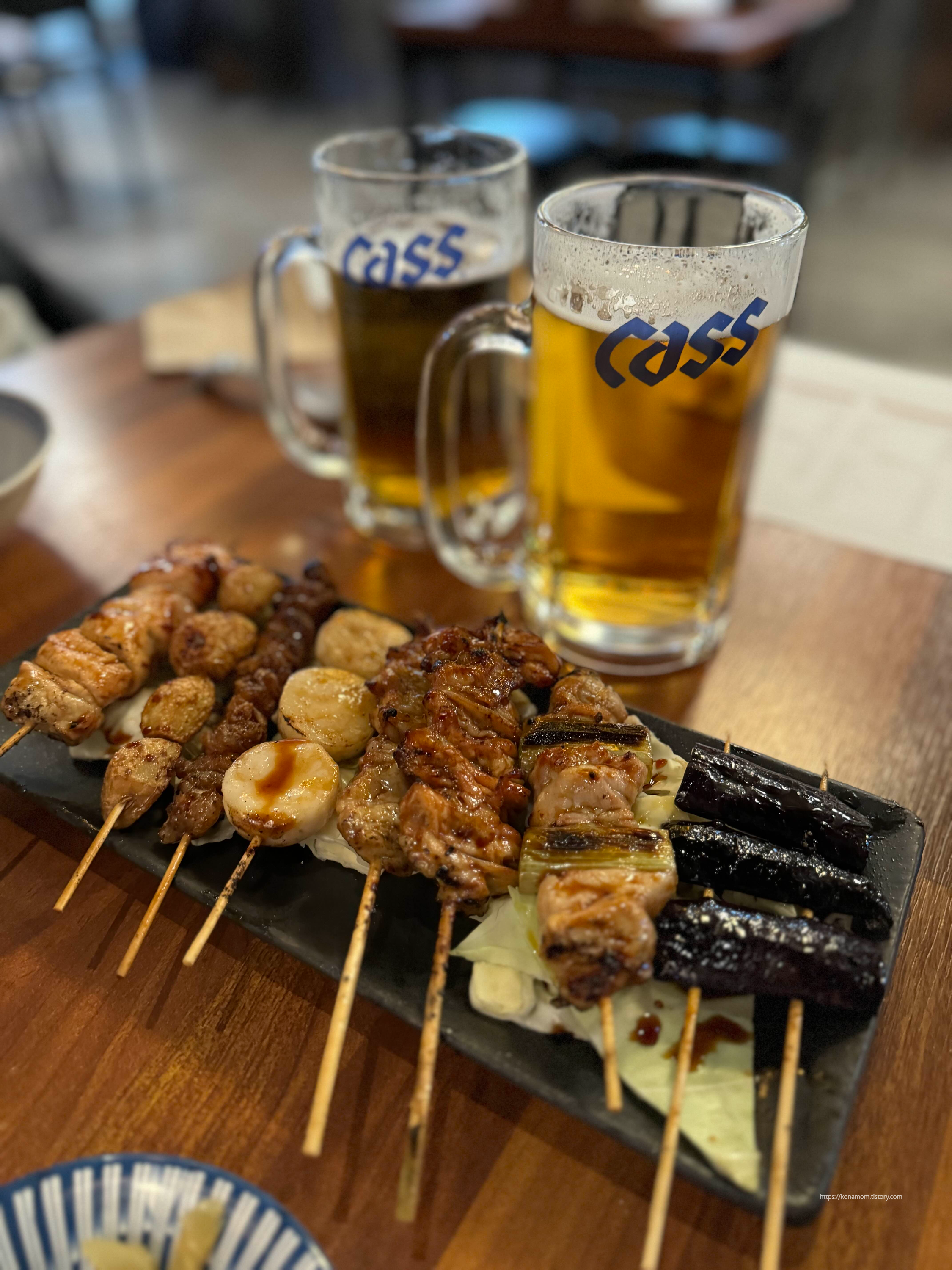 시원한 생맥주에 꼬치세트 주문했습니다.