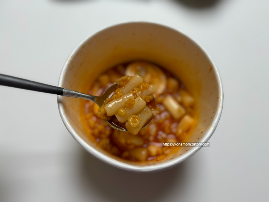 원래 튀김 바삭한 걸 좋아하는 편인데, 튀김믹스를 국물에 푹 담가 먹으면 부드럽고 떡볶이 양념이 잘 베어서 같이 먹기 좋았습니다.