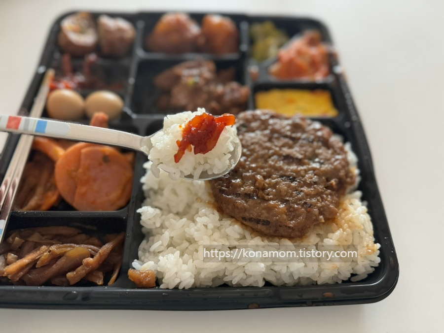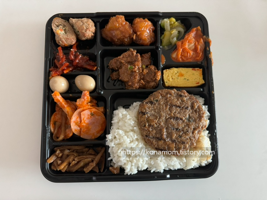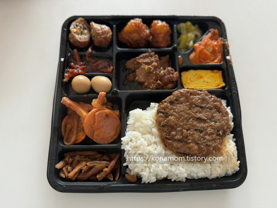 떡갈비 외에도 10가지의 반찬들이 조금씩 들어 있었습니다.