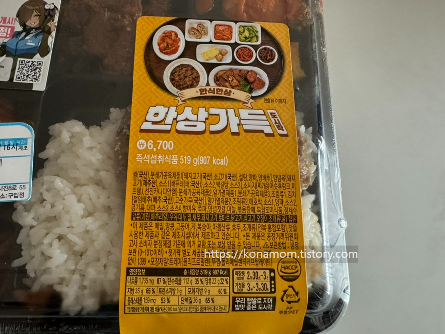 gs편의점 도시락 한식한상 한상가득 도시락은 6,700원이고 전자레인지에 데워서 드시면 됩니다.