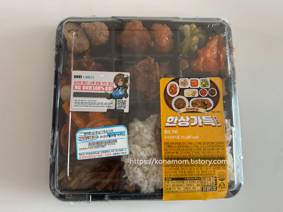 gs편의점 도시락 한식한상 한상가득 도시락은 6,700원이고 전자레인지에 데워서 드시면 됩니다.