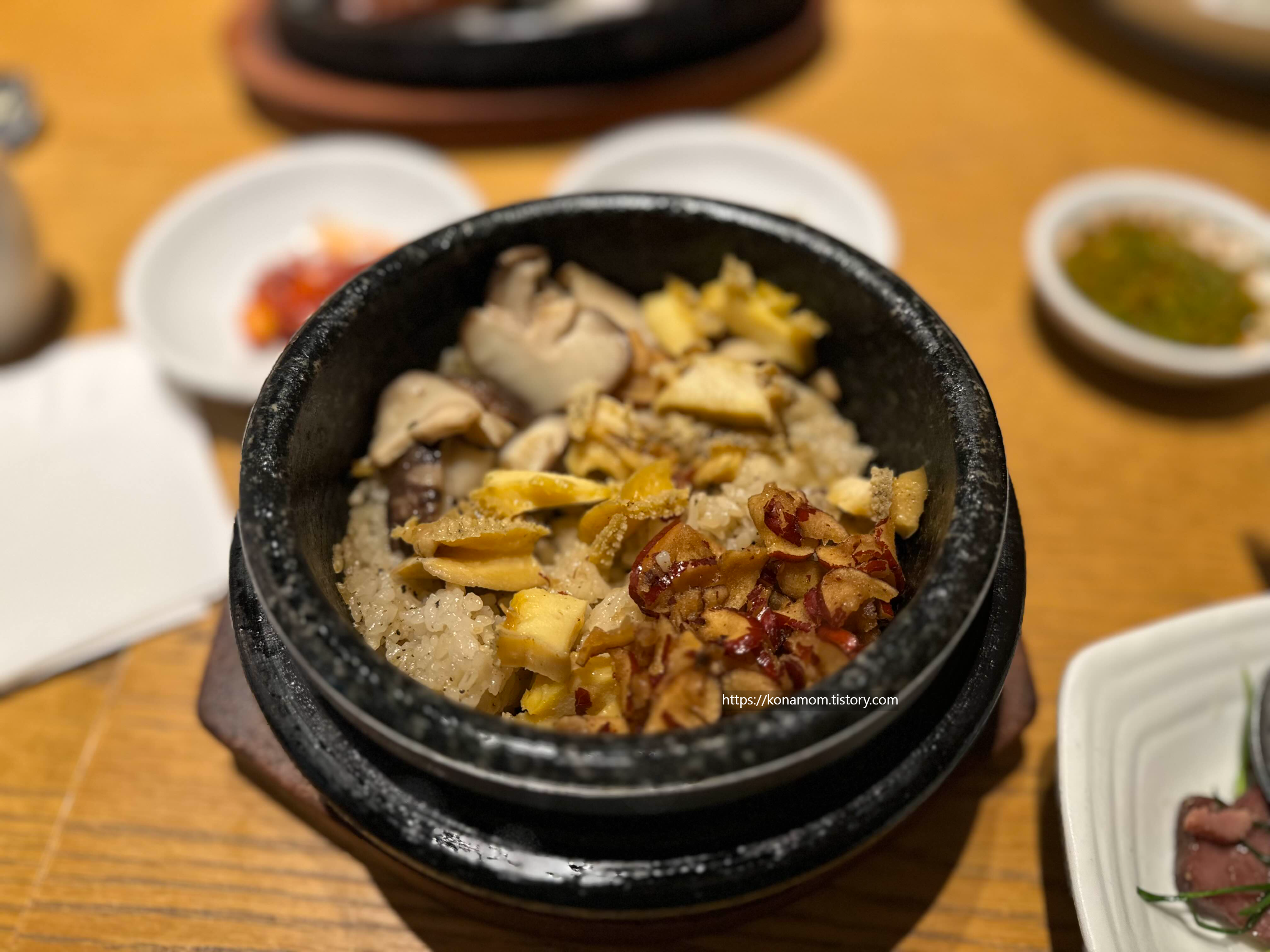 전복돌솥밥은 전복, 버섯, 대추가 같이 들어가 있는데, 단맛을 안 좋아하신다면 대추는 빼고 드시는 걸 추천합니다.