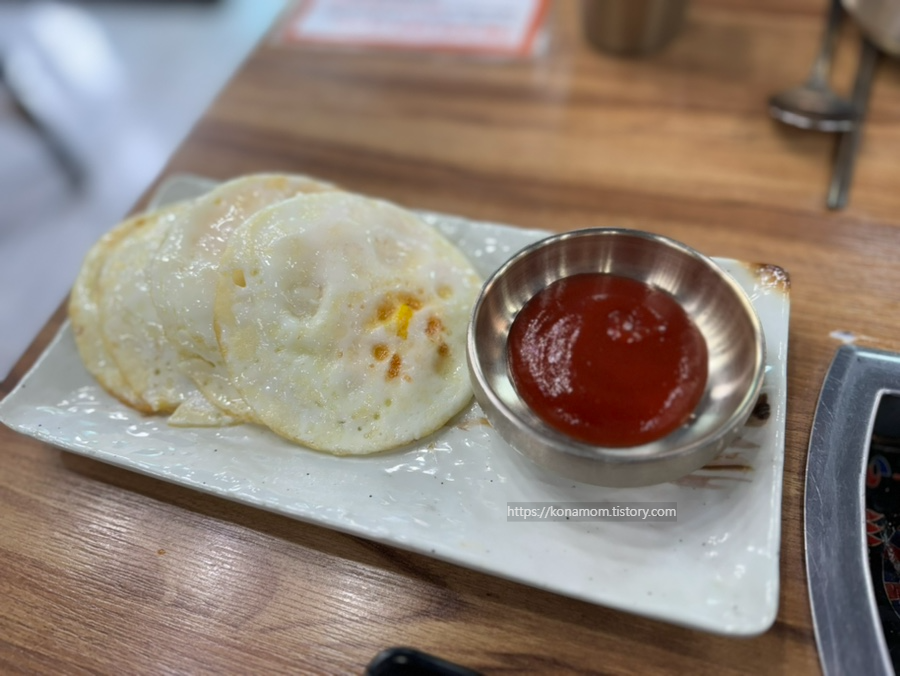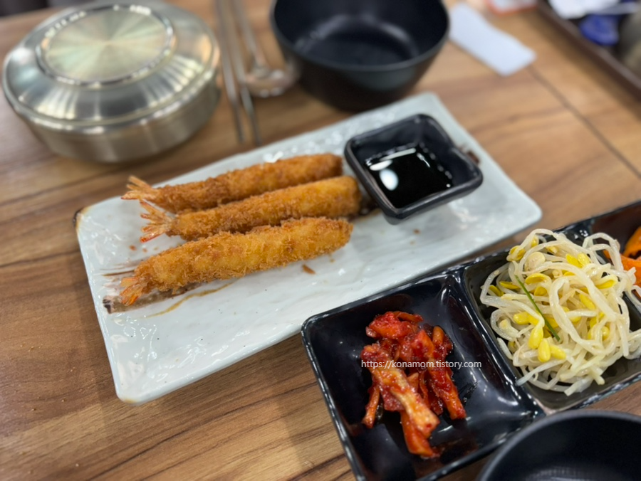 달걀말이, 새우튀김이 같이 나옵니다.