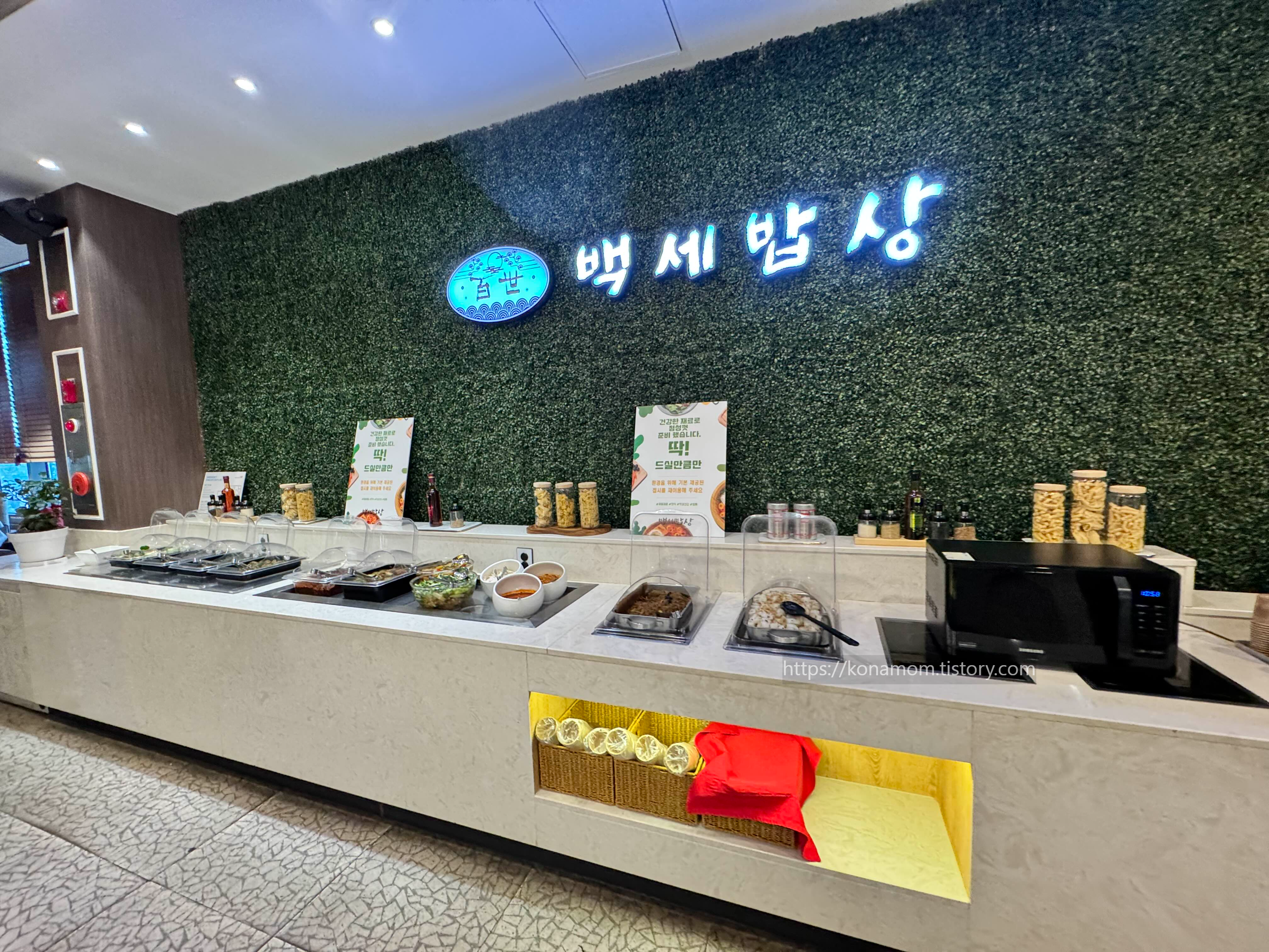 넉넉하고 깔끔한 셀프바가 준비되어 있는 백세밥상 광명밤일마을점!