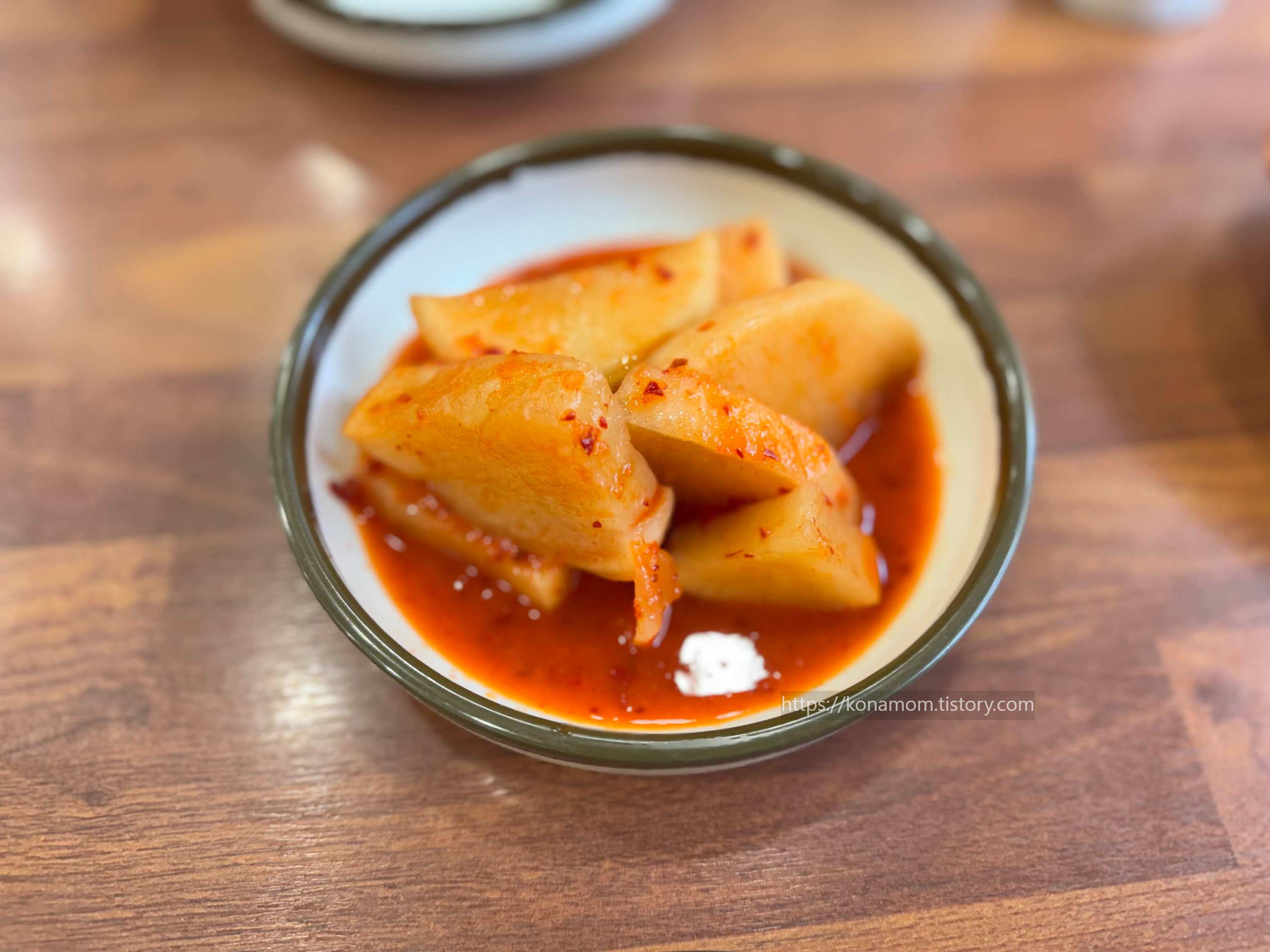 국밥의 완성도를 높이는 최고의 조연! 바로 깍두기입니다. 이 집 깍두기는 아삭한 식감이 살아있고, 적당히 잘 익어 국밥과 함께 먹을 때 그 시원함이 배가 됩니다. 살짝 매콤하면서도 달큼한 맛이 뜨거운 국물을 한 모금 마시고 난 후 입안을 개운하게 정리해 줍니다.