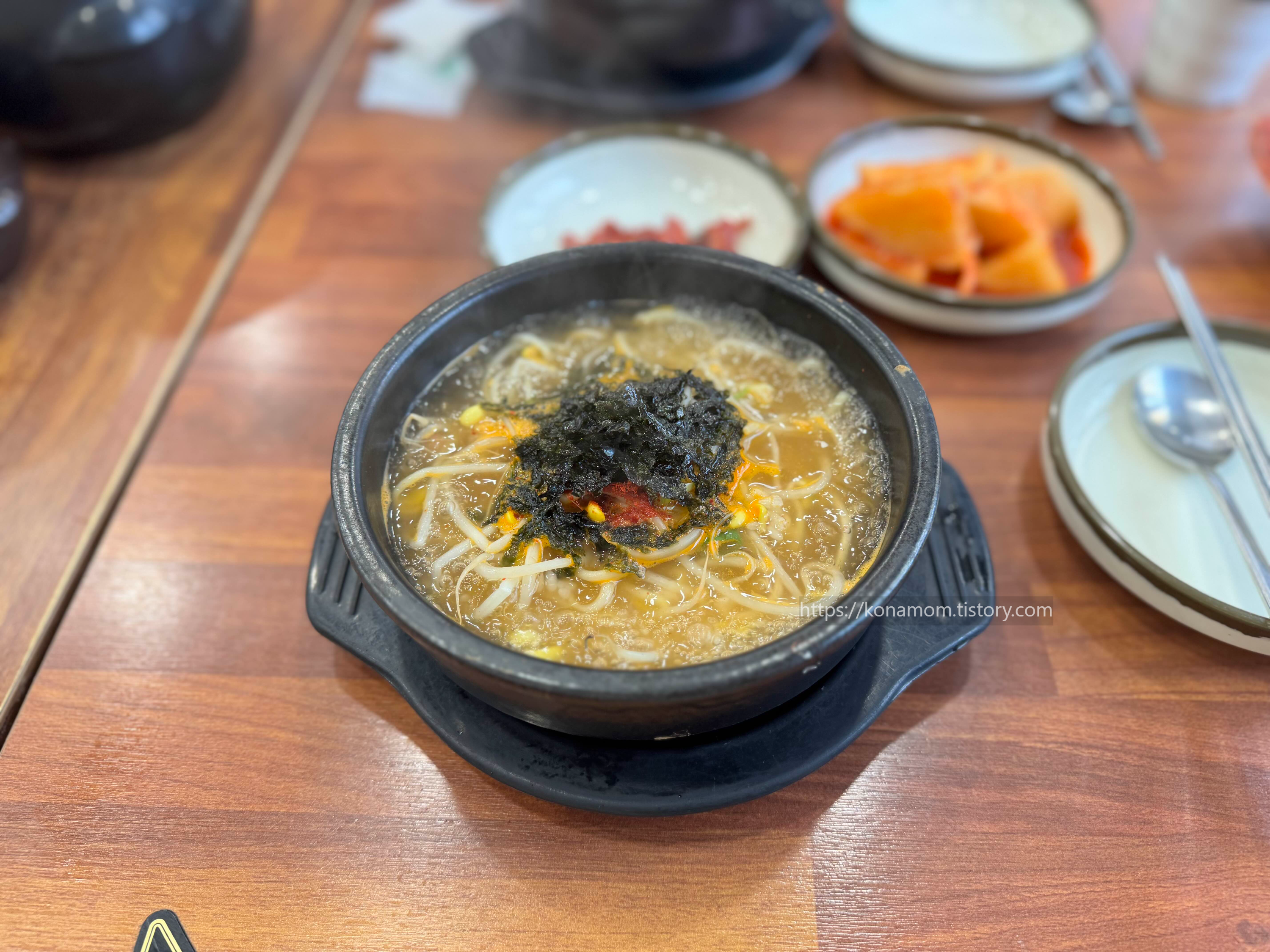 토렴된 밥알은 물에 적셔져 지나치게 퍼지지도, 딱딱하지도 않은 부드러운 밥알이 콩나물의 아삭함과 대비되며 입안을 든든하게 채워줍니다.