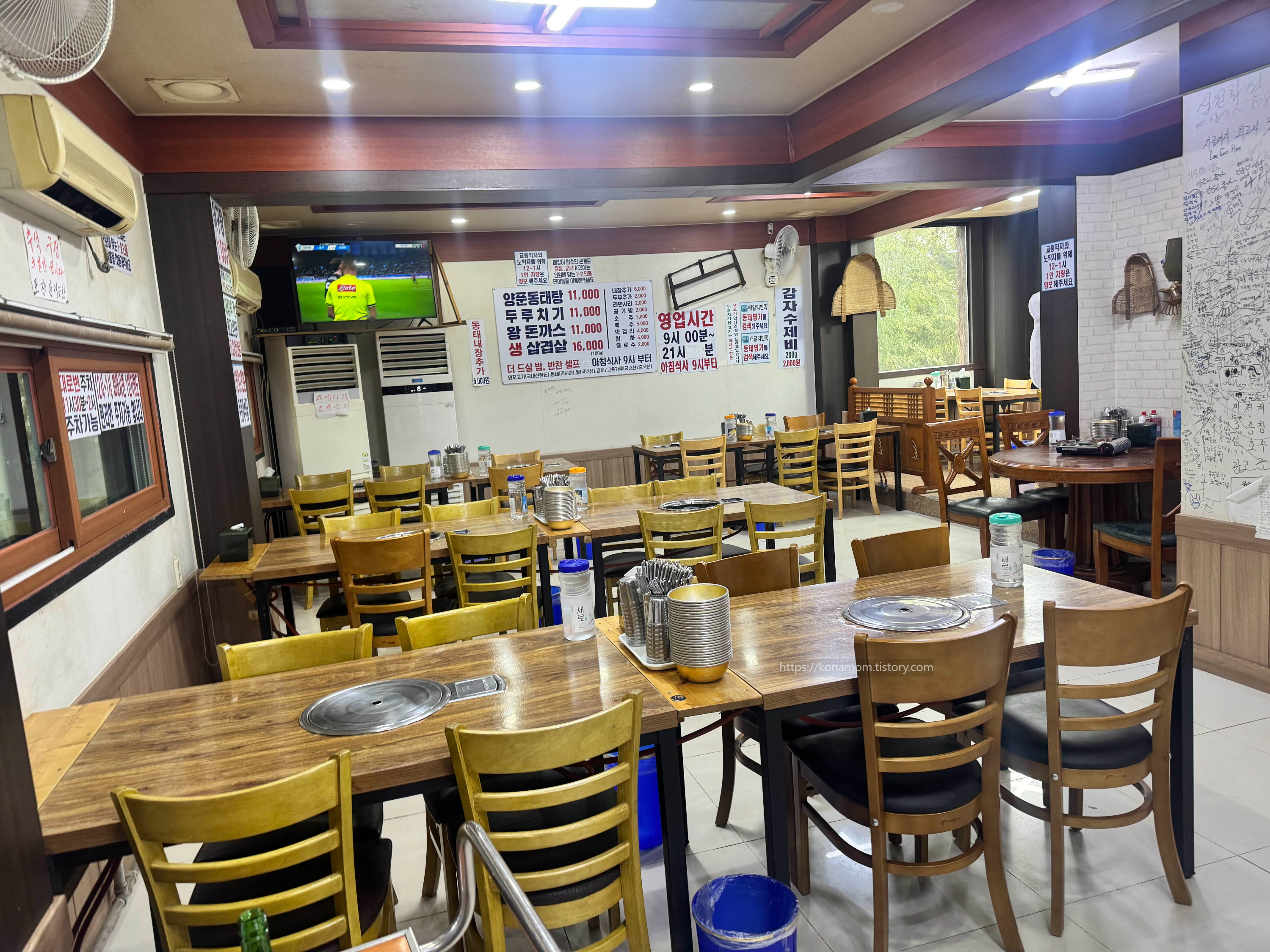 세월의 흔적이 느껴지는 실내. 평일 점심에도 테이블이 꽉 찰 정도로 광명맛집으로 유명한 곳입니다.