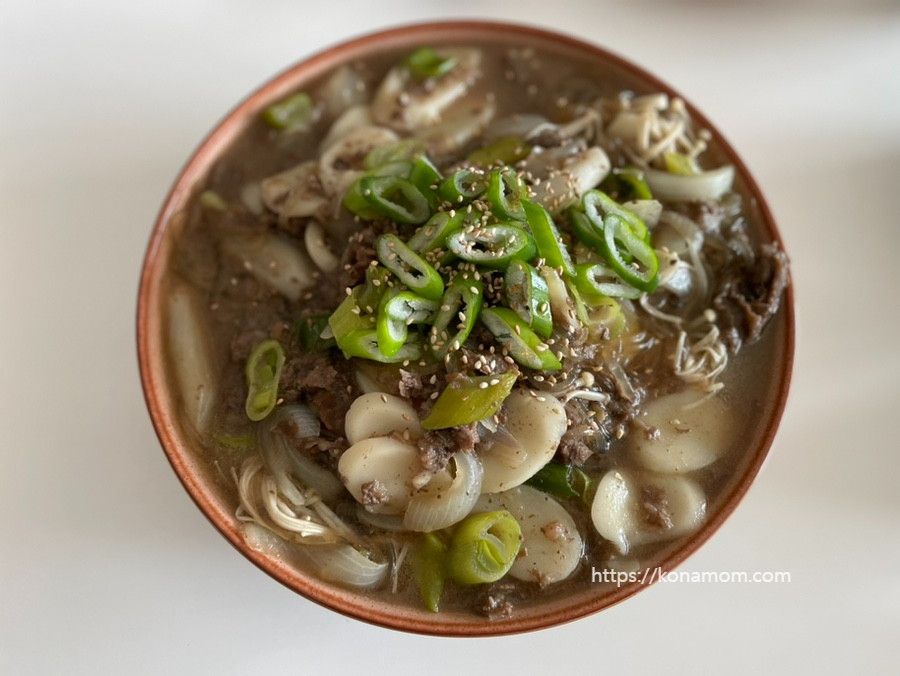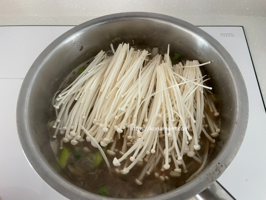 떡, 당면, 양파, 대파, 팽이버섯도 같이 넣었더니 양이 푸짐해졌어요.