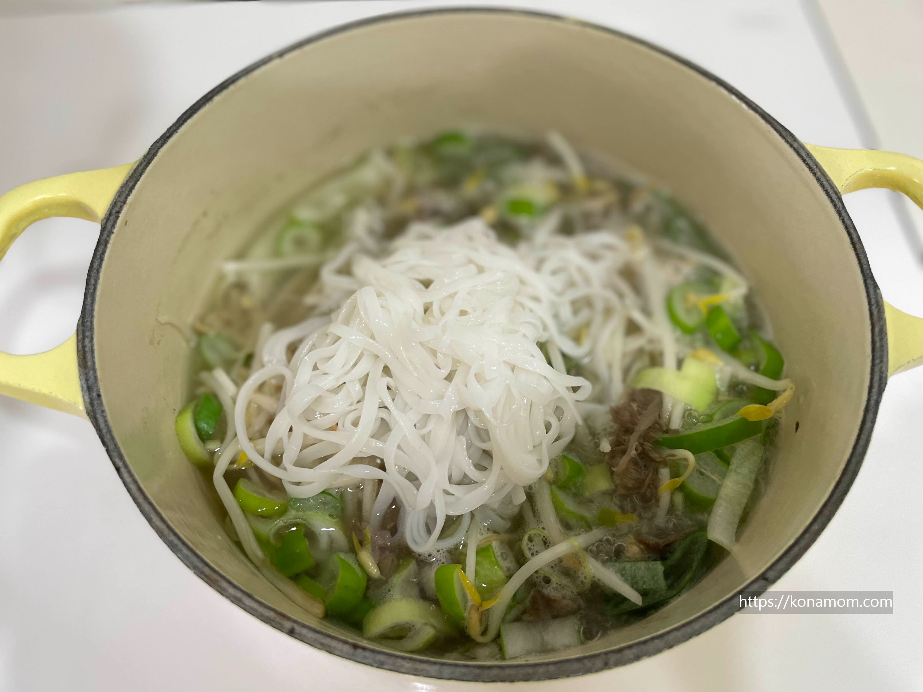 쌀국수 면을 끓고 있는 육수에 넣어 줍니다.(숙주나 대파도 이때 넣으면 맛있어요!)