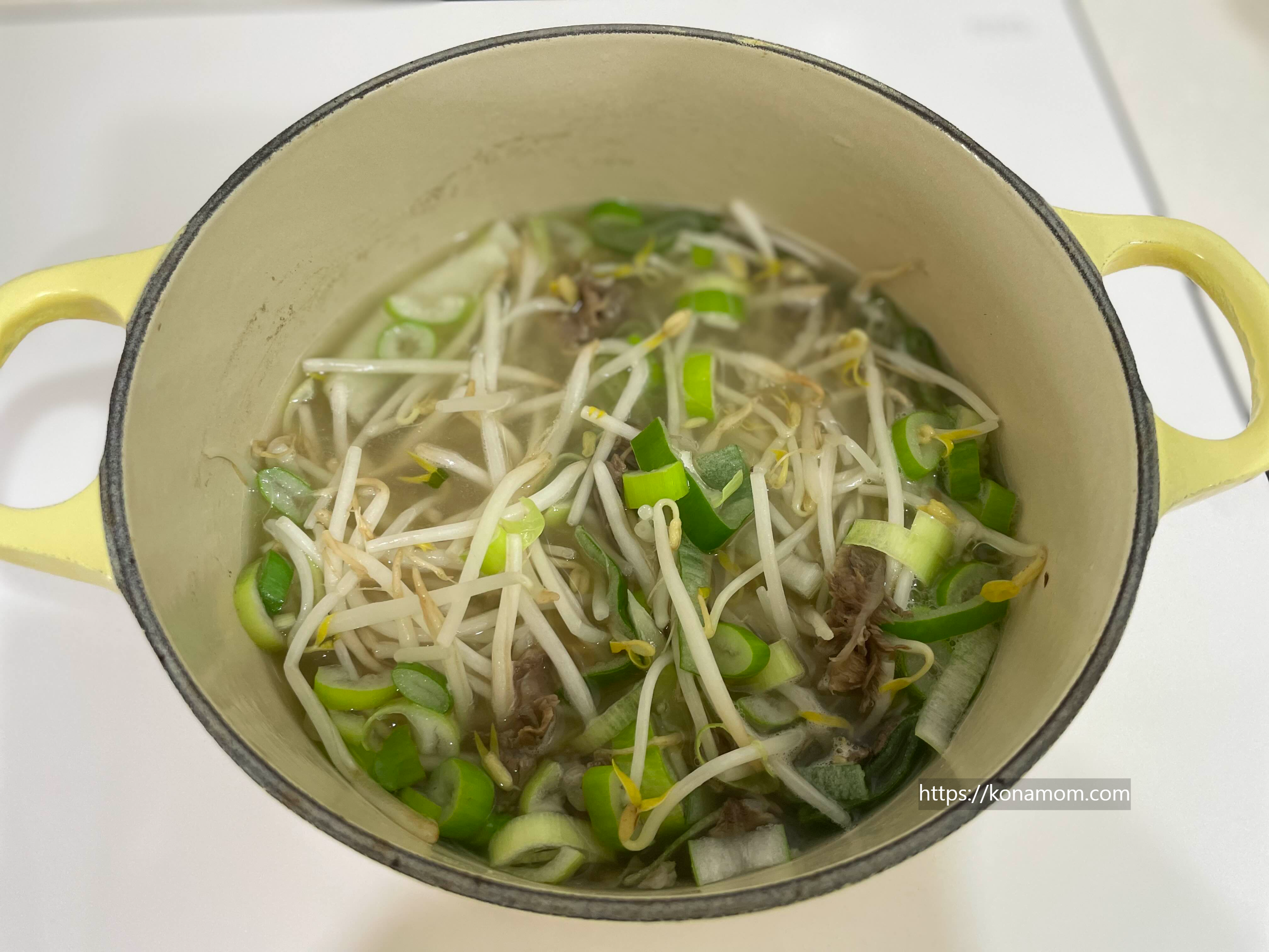 코나는 대파를 안 먹기 때문에 따로 끓였어요;; 숙주만 조금 넣었습니다.
