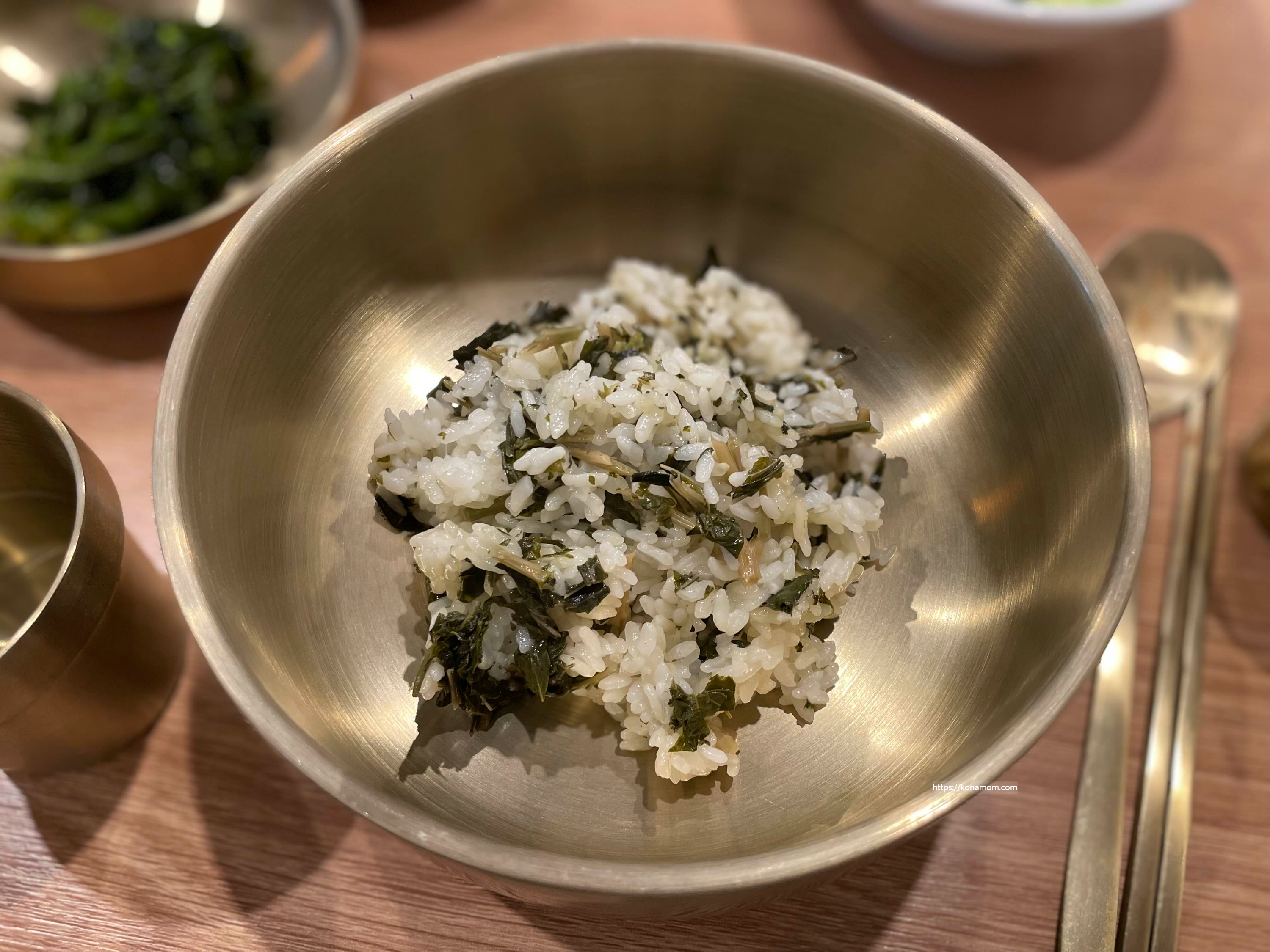 지난번에 왔을 때는 부지갱이 정식으로 주문해서 먹었었는데, 둘 다 먹어보니 씹을수록 나물향이 은근히 나는 부지갱이가 더 맛있는 것 같아요. 아이는 톳밥이 더 맛있다고 했습니다.